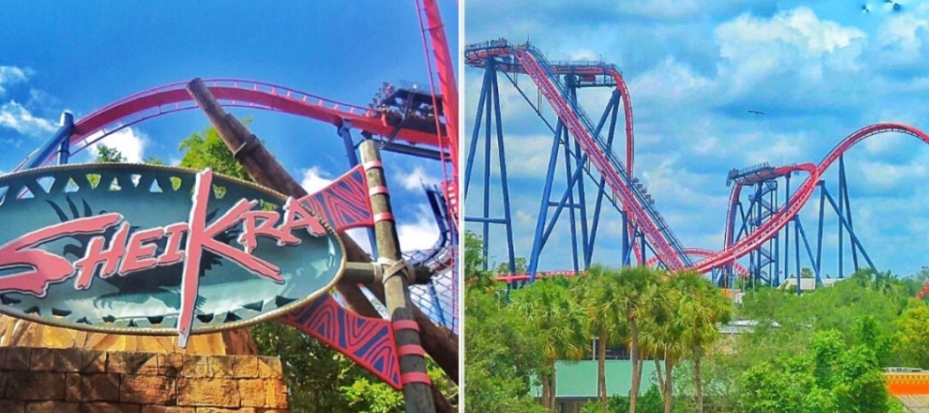 Let’s start with the rollercoasters, first. ‘Sheikra’ elevates you 200 feet up into the sky before dangling you over the edge of a 90 degree drop – holding you there for a prolonged wait to up the anticipation! Throw in some loop-the-loops and a splash zone and you have yourself a pretty decent ride. Best seats are on the front row for this one.